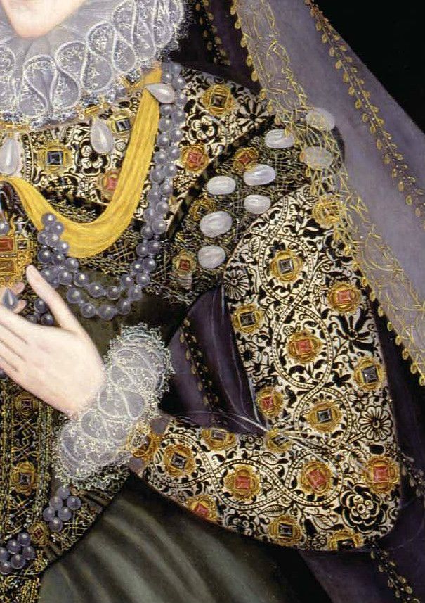 There was quite a bit of detailed, formal...and to my eyes...fussy embroidery done in England at the time. Oh, it was amazing workmanship, but quite ornate and what my husband would call "crusty." The elaborate apparel of the royals was adorned with this high quality workmanship...as were furnishings, tapestries, bed curtains, and religious textiles.