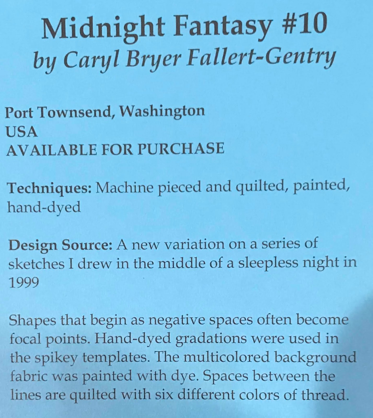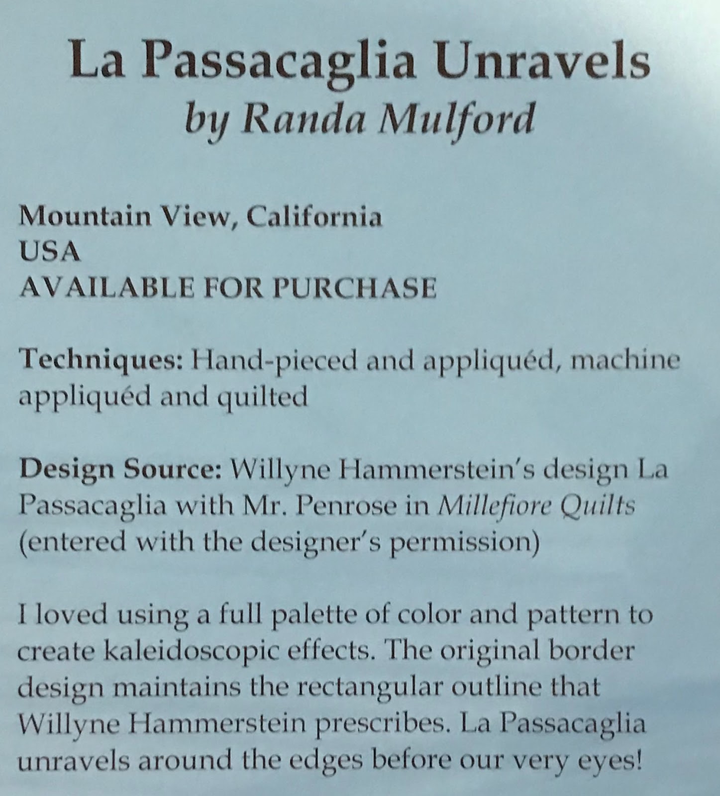 (Sorry, no label for this fabulous quilt...)