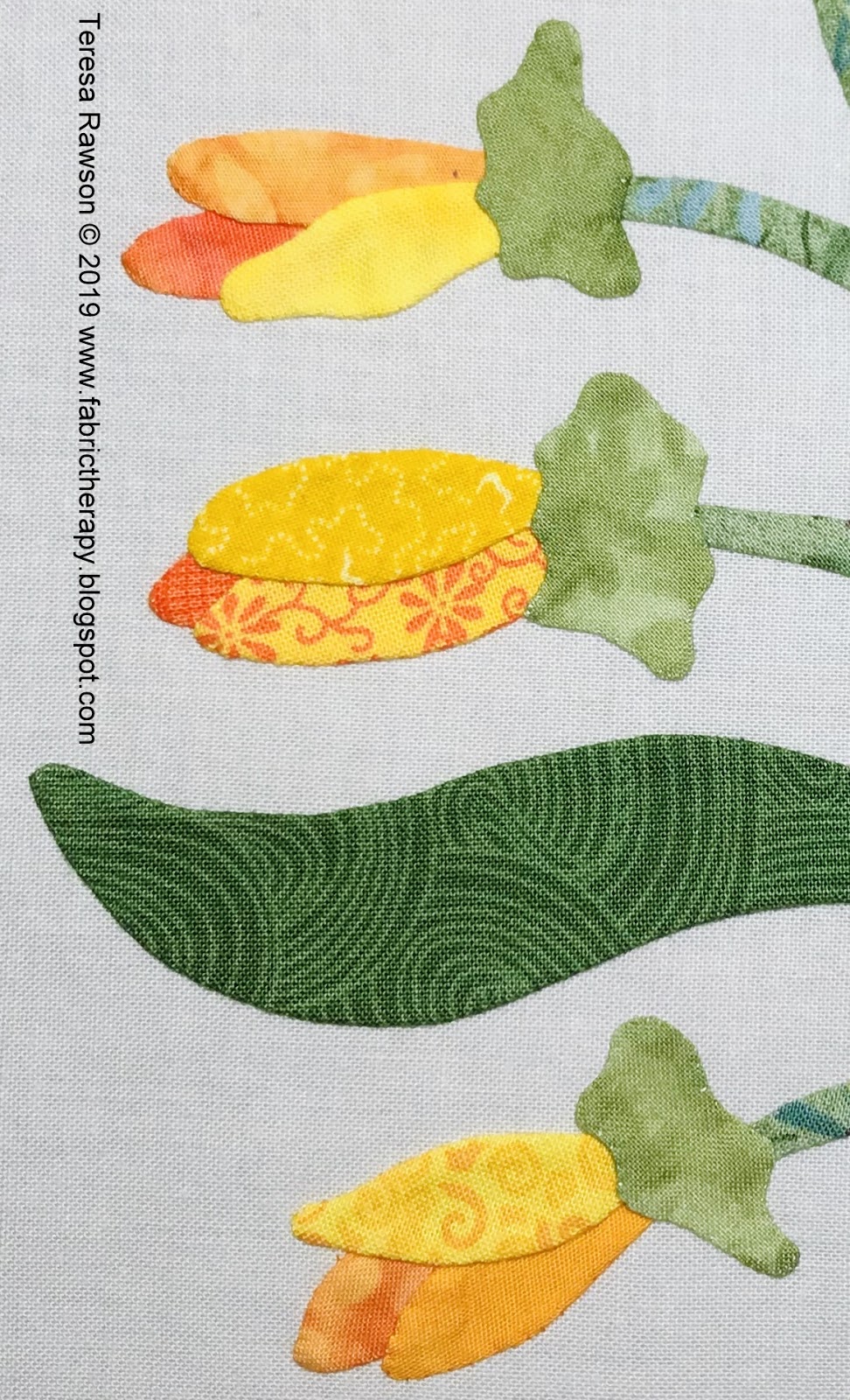 In the detail below, I love how there are ink mark mistakes...they will be covered or, most likely, cut away to prepare the motif for turning under and stitching in place.