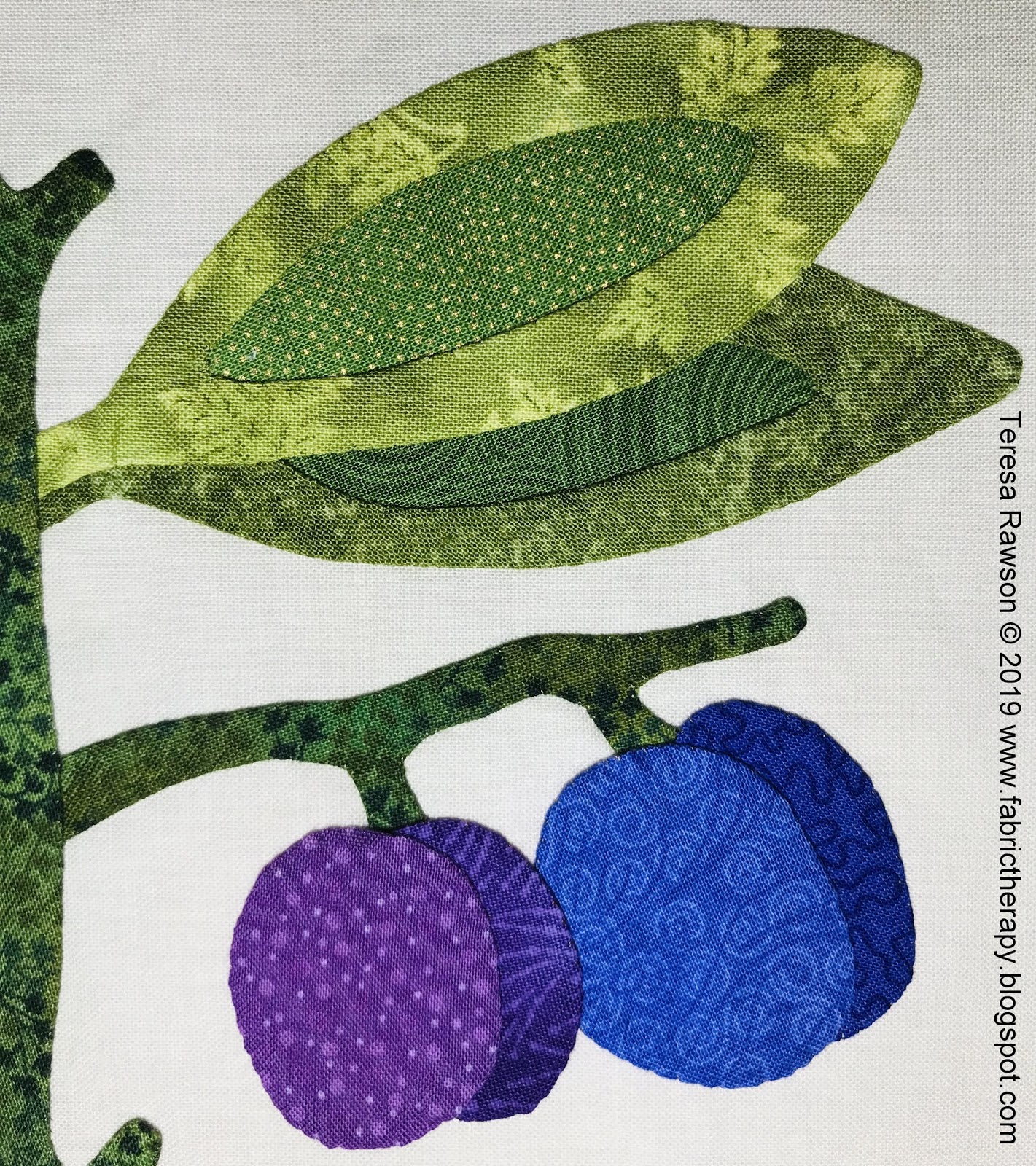 I chose to make some of my plums with 2 fabrics, hoping to represent some perspective...not sure if I succeeded.