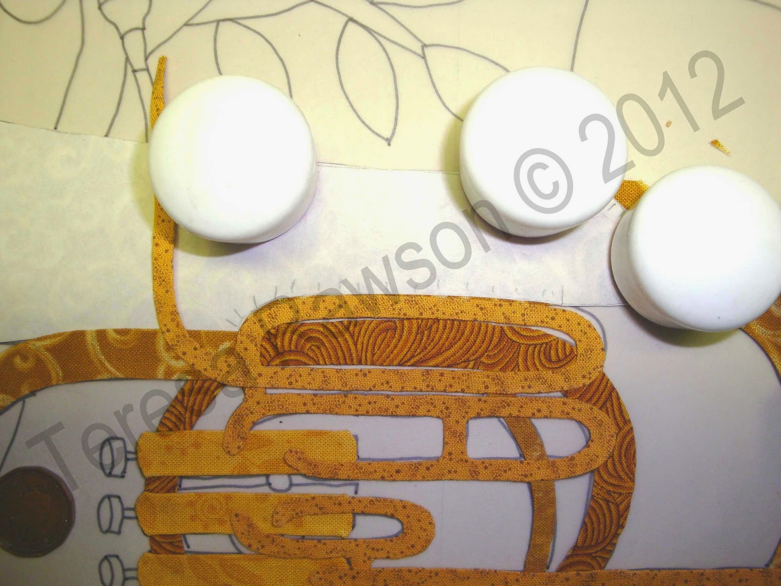 Here is some of the prep I did on the tuba block for my "Baltimore Rhapsody - Symphony" quilt...the "right" side...